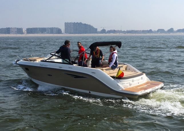 Speedboot Heli'eau is een Sea Ray 250 Sun sport, uitgerust met 1 motor van 350 pk. De sturing en aandrijving gebeurt via Z-Drive met duo-prop.